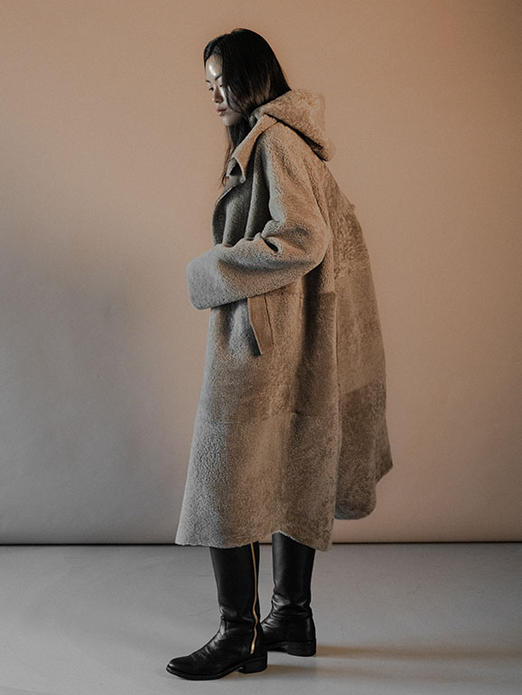 The lambskin used comes exclusively as a by-product from the food industry and is processed in Europe to conserve resources. The parka stands for responsible fashion with high standards of quality and style.