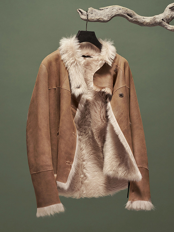 The short, reversible lambskin jacket impresses with its generous collar and side zippers, which provide more airiness – particularly practical when it gets warmer and you open the jacket. It fastens with hand-sewn press studs, a symbol of fine craftsmanship.